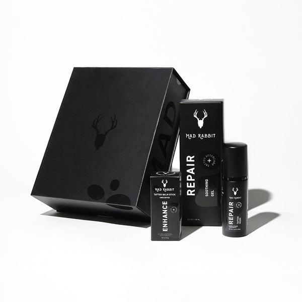 Caring for your tattoo doesn’t have to be complicated. With proper washing, moisturizing, and sun protection, your tattoo will heal quickly and stay bold and vibrant for years to come. Mad Rabbit’s specially formulated Gentle Cleansing Wash, Soothing Gel, Replenishing Body Lotion, and Tattoo Sunscreen SPF 30 are your ultimate tattoo aftercare essentials. Stick to this guide, trust the process, and enjoy your beautiful new ink!