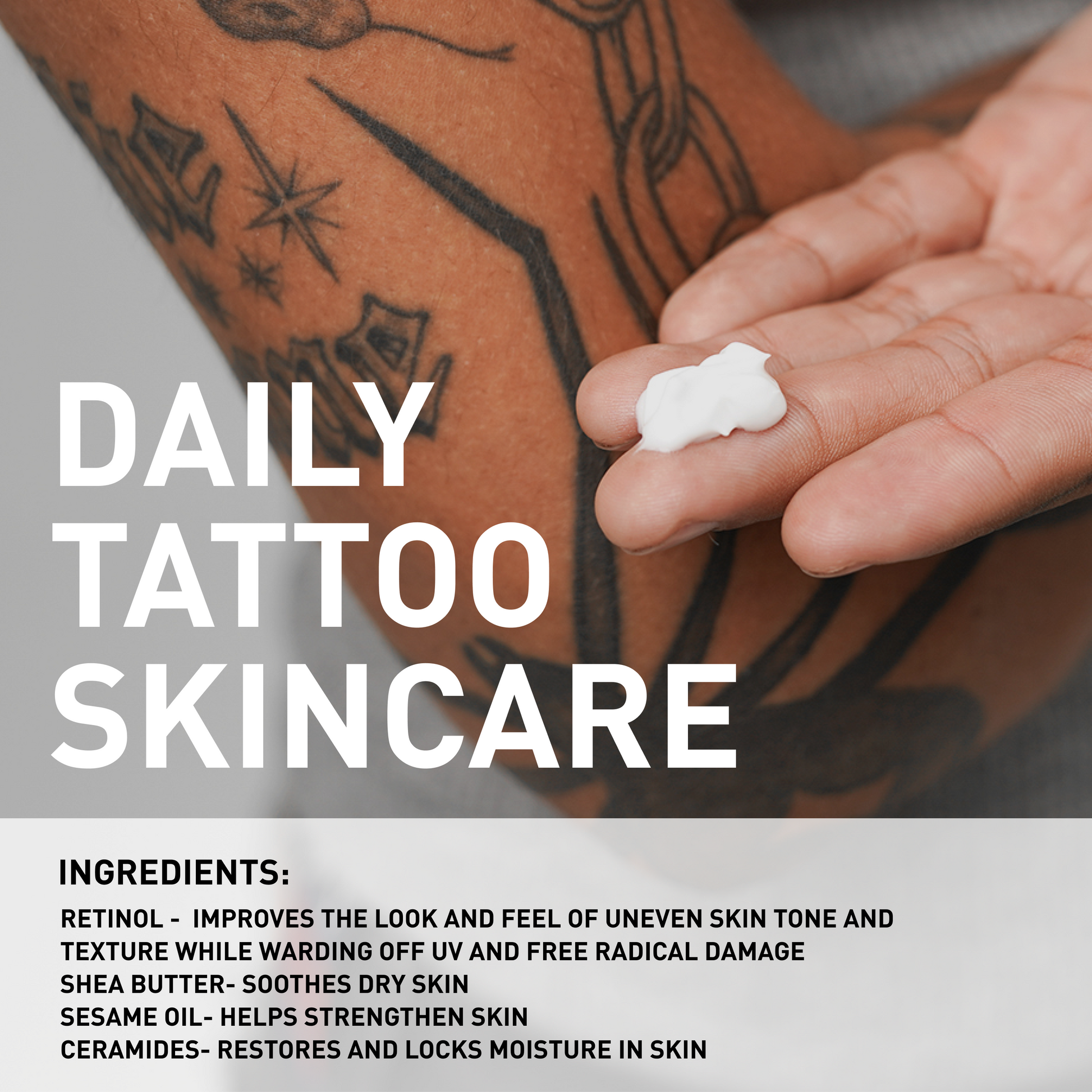 - Apply AM & PM as part of a daily tattoo skincare routine - on places where you have and don't have tattoos. In AM follow with SPF.