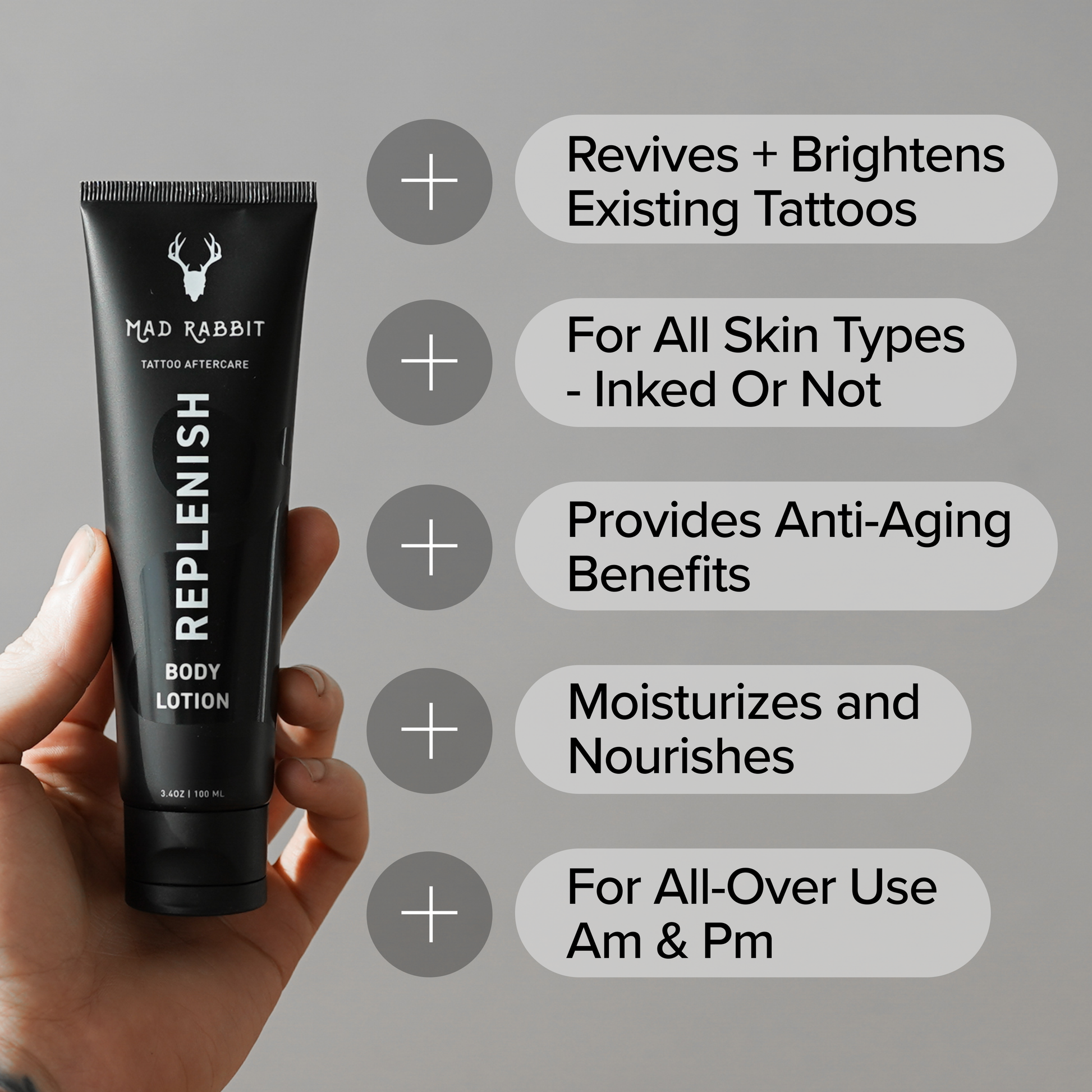 - Apply AM & PM as part of a daily tattoo skincare routine - on places where you have and don't have tattoos.