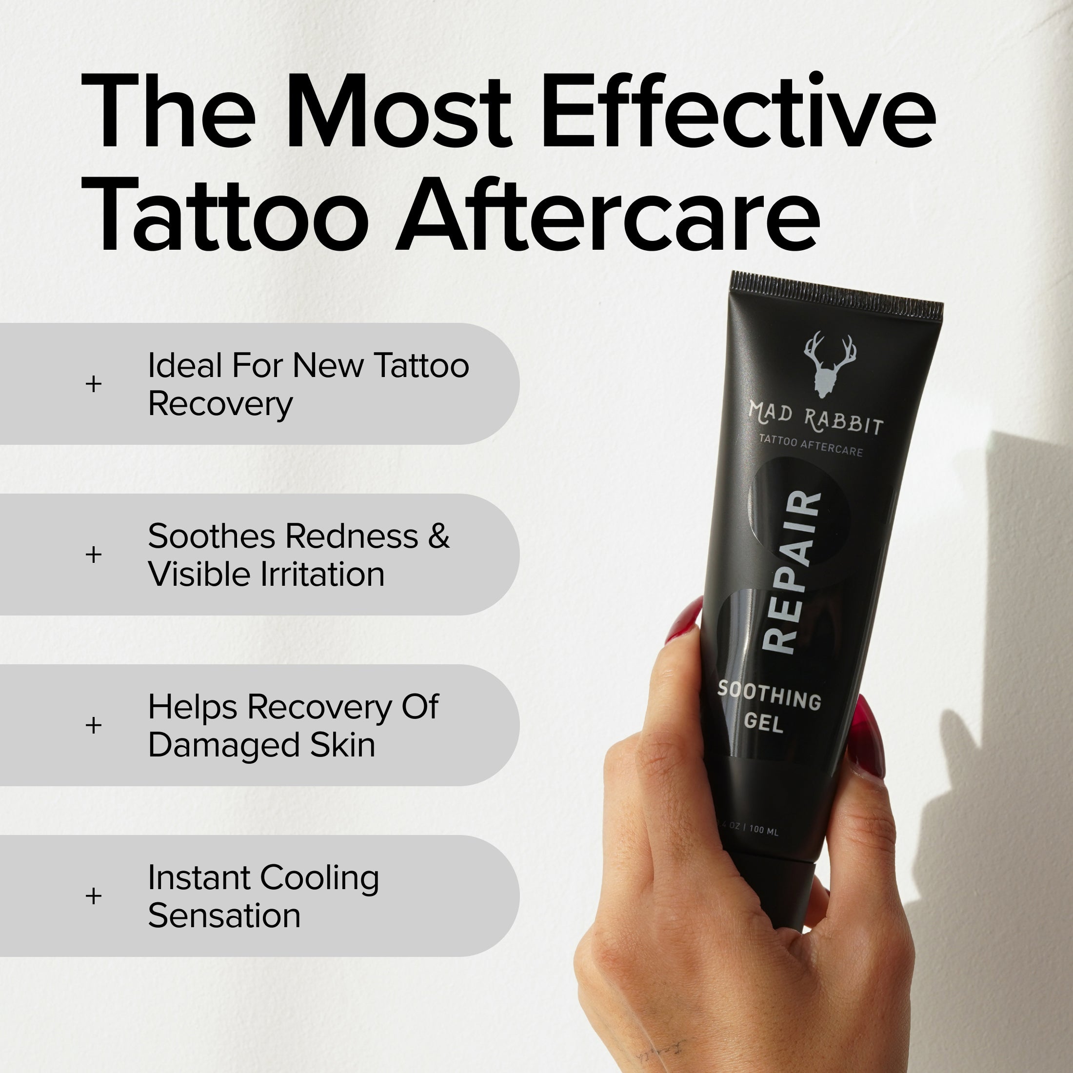 Additionally, Mad Rabbit’s Soothing Gel is free of petroleum-based ingredients, mineral oils, and other harmful additives, making it safe for even the most sensitive skin. Next time you ask your tattoo artist for aftercare tips, remember Mad Rabbit.